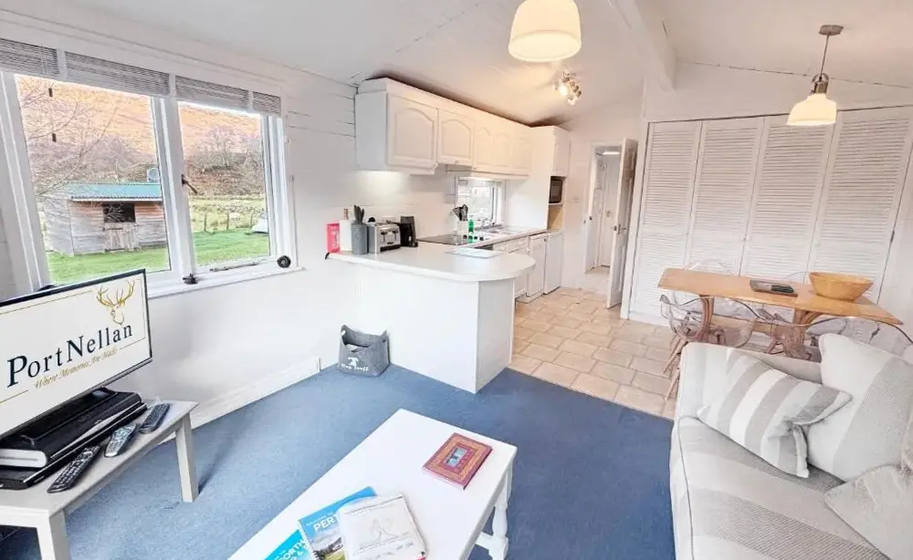 More information about PortnellanFisher Lodge offers free Wi-Fi and complimentary parking for guests staying in its two-person accommodations located in Crianlarich. The lodge’s convenient setting places it just three kilometers away from central Crianlarich, accessible within five minutes by car.